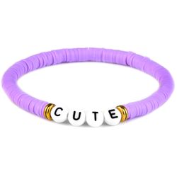 Letter bracelet have different words and designs for choice, customized words or designs are available.Polymer Clay Beads Bracelet Beach Bohemia Sweet 6mm Soft Clay Bracelet Elastic Lady Hand String Rainbow Bracelet, used for Gift, Party, Wedding, Anniversary, Engagement, Jewelry wholesaler, Distributor, Jewelry maker, Fashion Costume company, Souvenir maker, gift maker.